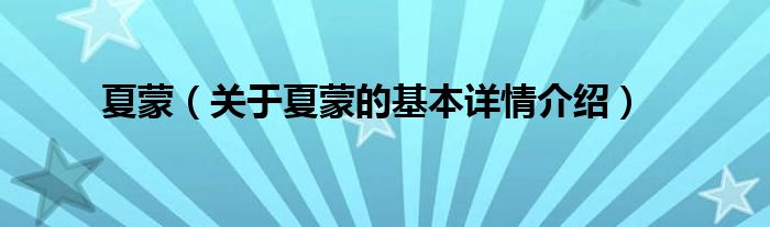 本文关于夏蒙的基本详情介绍就讲解完毕,希望对大家有所帮助。