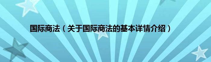 本文关于国际商法的基本详情介绍就讲解完毕,希望对大家有所帮助。