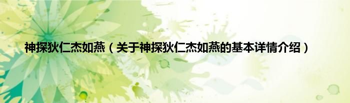 本文关于神探狄仁杰如燕的基本详情介绍就讲解完毕,希望对大家有所帮助。