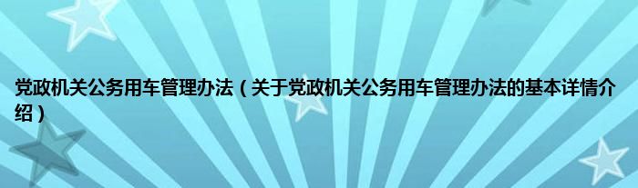 本文关于党政机关公务用车管理办法的基本详情介绍就讲解完毕,希望对大家有所帮助。