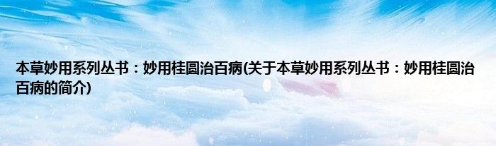 1、 《本草妙用系列丛书:妙用桂圆治百病》内容简介:桂圆是我国南方名贵特产,具有壮阳益气、补血安神等功效,历史上有“南桂圆北人参”之誉。
