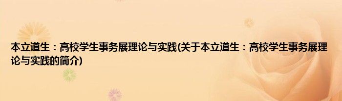 本文关于本立道生:高校学生事务展理论与实践的简介就讲解完毕,希望对大家有所帮助。