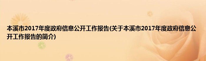 大家好,本溪市2017年度政府信息公开工作报告,关于本溪市2017年度政府信息公开工作报告的简介很多人还不知道,现在让我们一起来看看吧!