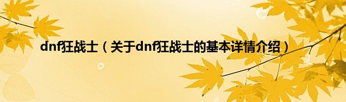 dnf狂战士(关于dnf狂战士的基本详情介绍)