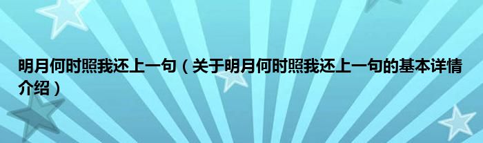 本文关于明月何时照我还上一句的基本详情介绍就讲解完毕,希望对大家有所帮助。
