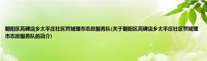 本文关于朝阳区高碑店乡太平庄社区管城理市志愿服务队的简介就讲解完毕,希望对大家有所帮助。