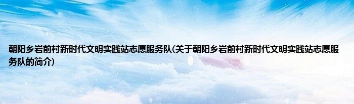 本文关于朝阳乡岩前村新时代文明实践站志愿服务队的简介就讲解完毕,希望对大家有所帮助。