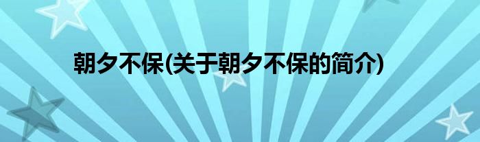 大家好,朝夕不保,关于朝夕不保的简介很多人还不知道,现在让我们一起来看看吧!