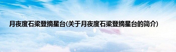 大家好,月夜度石梁登摘星台,关于月夜度石梁登摘星台的简介很多人还不知道,现在让我们一起来看看吧!