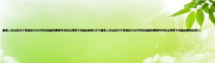本文关于最高人民法院关于审理拒不支付劳动报酬刑事案件适用法律若干问题的解释的简介就讲解完毕,希望对大家有所帮助。