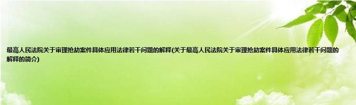 1、 《最高人民法院关于审理抢劫案件具体应用法律若干问题的解释》是为依法惩处抢劫犯罪活动,根据刑法的有关规定,就审理抢劫案件具体应用法律的若干问题作出的司法解释。