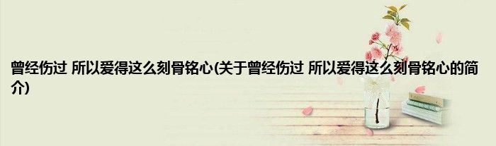 本文关于曾经伤过,所以爱得这么刻骨铭心的简介就讲解完毕,希望对大家有所帮助。