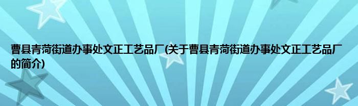 本文关于曹县青菏街道办事处文正工艺品厂的简介就讲解完毕,希望对大家有所帮助。