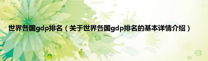 本文关于世界各国gdp排名的基本详情介绍就讲解完毕,希望对大家有所帮助。