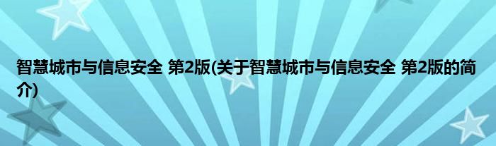 大家好,智慧城市与信息安全 第2版,关于智慧城市与信息安全 第2版的简介很多人还不知道,现在让我们一起来看看吧!