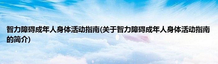 大家好,智力障碍成年人身体活动指南,关于智力障碍成年人身体活动指南的简介很多人还不知道,现在让我们一起来看看吧!