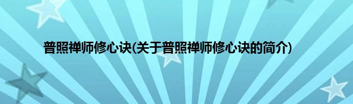 本文关于普照禅师修心诀的简介就讲解完毕,希望对大家有所帮助。