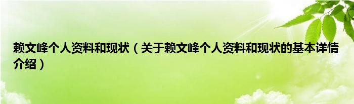 本文关于赖文峰个人资料和现状的基本详情介绍就讲解完毕,希望对大家有所帮助。