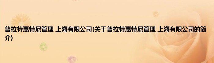 本文关于普拉特惠特尼管理 上海有限公司的简介就讲解完毕,希望对大家有所帮助。