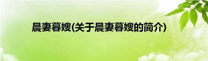 本文关于晨妻暮嫂的简介就讲解完毕,希望对大家有所帮助。