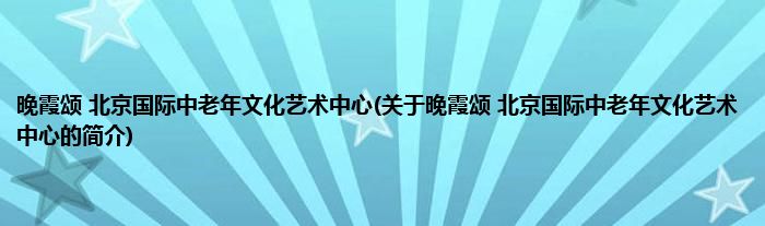 本文关于晚霞颂 北京国际中老年文化艺术中心的简介就讲解完毕,希望对大家有所帮助。