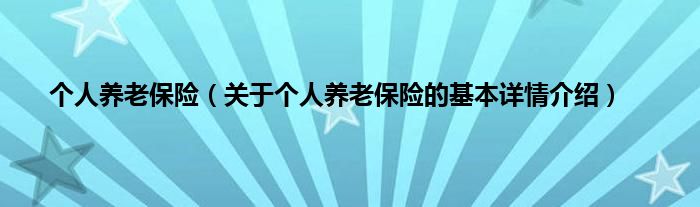 本文关于个人养老保险的基本详情介绍就讲解完毕,希望对大家有所帮助。