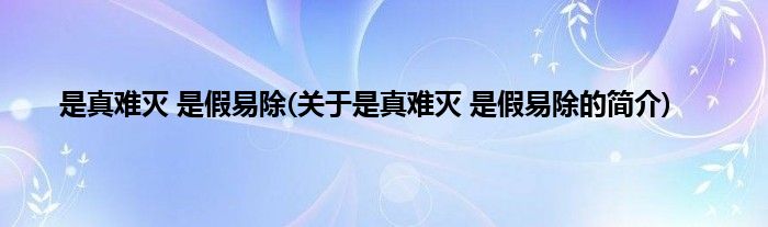 本文关于是真难灭,是假易除的简介就讲解完毕,希望对大家有所帮助。