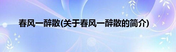 本文关于春风一醉散的简介就讲解完毕,希望对大家有所帮助。