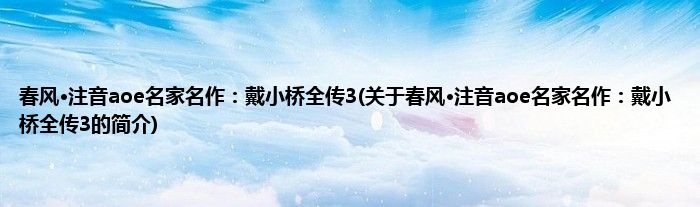 本文关于春风·注音aoe名家名作:戴小桥全传3的简介就讲解完毕,希望对大家有所帮助。