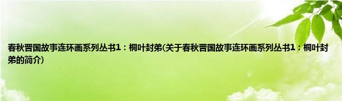1、 《春秋晋国故事连环画系列丛书1:桐叶封弟》是一本书籍,山西人民出版社出版,出版时间2010年9月1日。