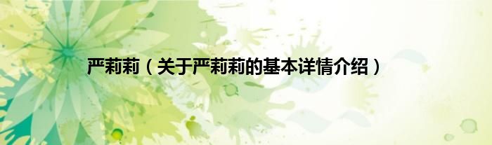本文关于严莉莉的基本详情介绍就讲解完毕,希望对大家有所帮助。