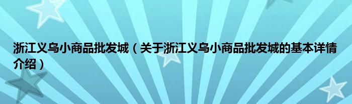 本文关于浙江义乌小商品批发城的基本详情介绍就讲解完毕,希望对大家有所帮助。