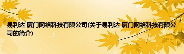 本文关于易利达 厦门网络科技有限公司的简介就讲解完毕,希望对大家有所帮助。