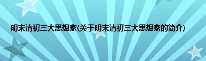 大家好,明末清初三大思想家,关于明末清初三大思想家的简介很多人还不知道,现在让我们一起来看看吧!