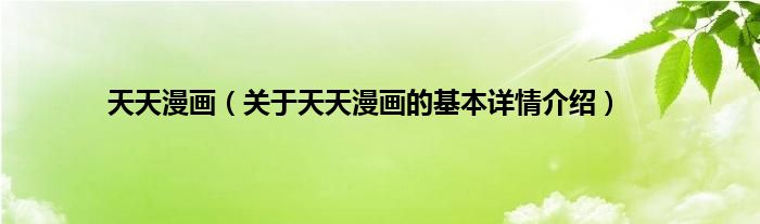 本文关于天天漫画的基本详情介绍就讲解完毕,希望对大家有所帮助。