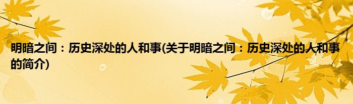 本文关于明暗之间:历史深处的人和事的简介就讲解完毕,希望对大家有所帮助。