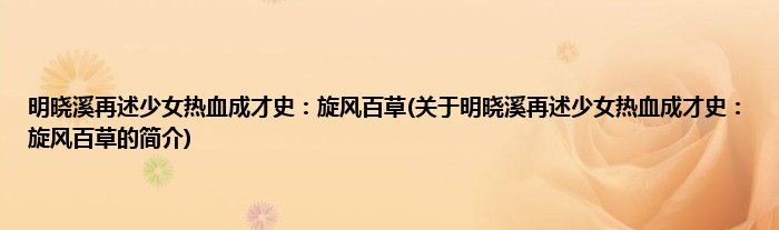 本文关于明晓溪再述少女热血成才史:旋风百草的简介就讲解完毕,希望对大家有所帮助。