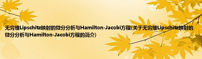 本文关于无穷维Lipschitz映射的微分分析与Hamilton-Jacobi方程的简介就讲解完毕,希望对大家有所帮助。