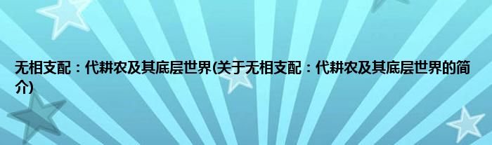 大家好,无相支配:代耕农及其底层世界,关于无相支配:代耕农及其底层世界的简介很多人还不知道,现在让我们一起来看看吧!