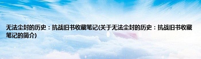 本文关于无法尘封的历史:抗战旧书收藏笔记的简介就讲解完毕,希望对大家有所帮助。