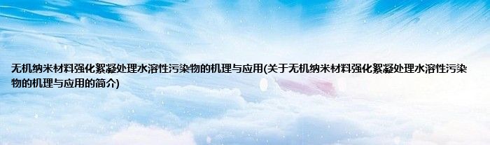 无机纳米材料强化絮凝处理水溶性污染物的机理与应用(关于无机纳米材料强化絮凝处理水溶性污染物的机理与应用的简介)