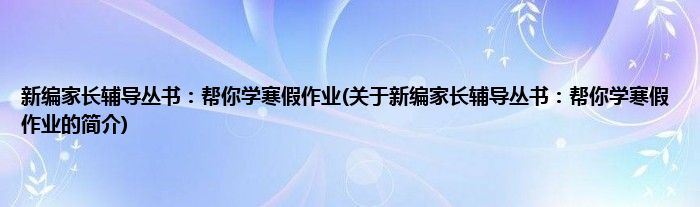大家好,新编家长辅导丛书:帮你学寒假作业,关于新编家长辅导丛书:帮你学寒假作业的简介很多人还不知道,现在让我们一起来看看吧!