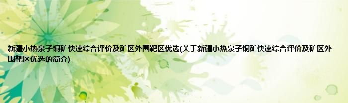 大家好,新疆小热泉子铜矿快速综合评价及矿区外围靶区优选,关于新疆小热泉子铜矿快速综合评价及矿区外围靶区优选的简介很多人还不知道,现在让我们一起来看看吧!