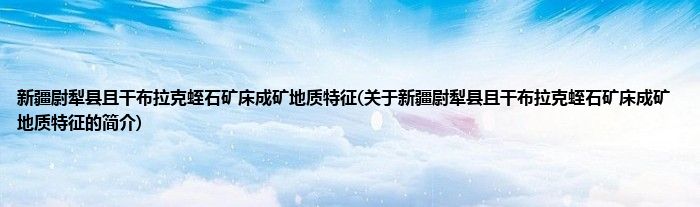 新疆尉犁县且干布拉克蛭石矿床成矿地质特征(关于新疆尉犁县且干布拉克蛭石矿床成矿地质特征的简介)