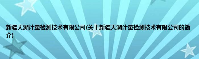 新疆天溯计量检测技术有限公司(关于新疆天溯计量检测技术有限公司的简介)