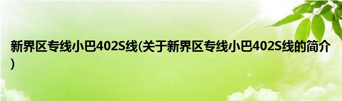 本文关于新界区专线小巴402S线的简介就讲解完毕,希望对大家有所帮助。