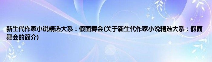 本文关于新生代作家小说精选大系:假面舞会的简介就讲解完毕,希望对大家有所帮助。