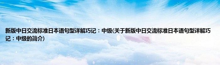 本文关于新版中日交流标准日本语句型详解巧记:中级的简介就讲解完毕,希望对大家有所帮助。
