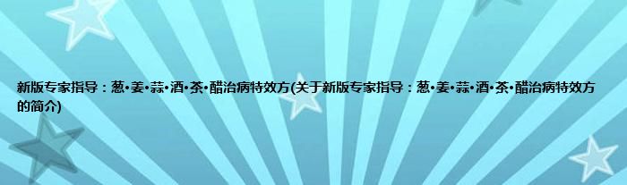 本文关于新版专家指导:葱·姜·蒜·酒·茶·醋治病特效方的简介就讲解完毕,希望对大家有所帮助。