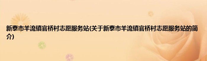 1、 新泰市羊流镇官桥村志愿服务站是由新泰市羊流镇志愿者协会领导下的志愿团体。